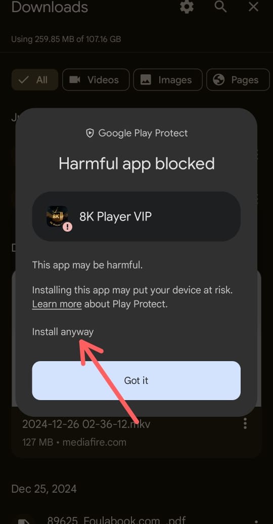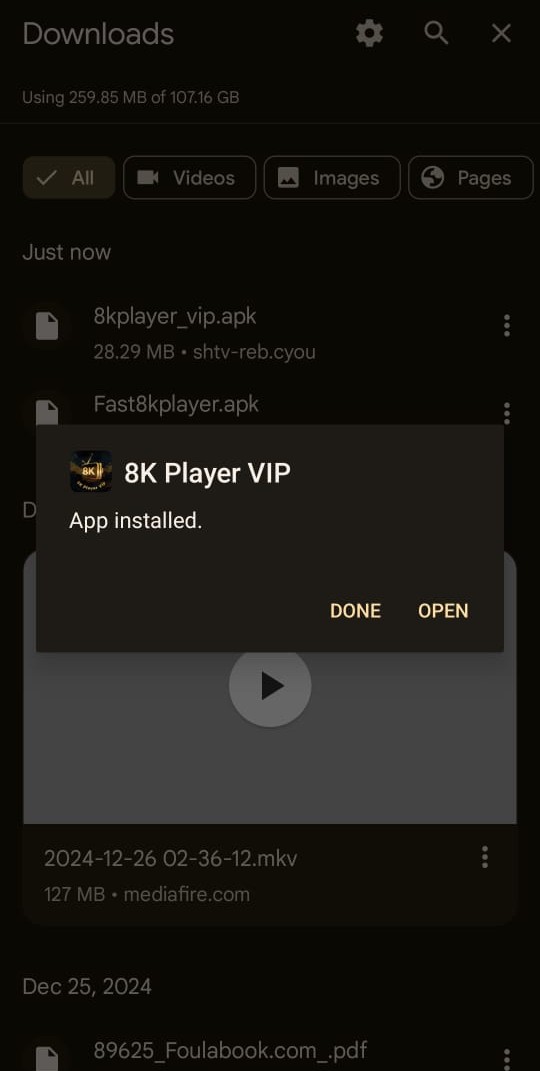 Go to your phone’s Downloads folder and tap on the APK file of your IPTV app (e.g., 8K Player VIP).