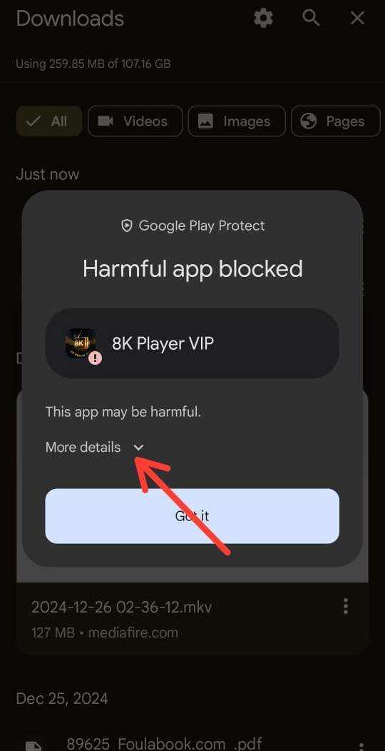 If you see a “Harmful app blocked” message, tap on “More details.”
